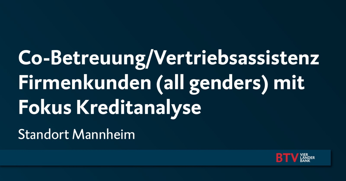 Co-Betreuung/Vertriebsassistenz Firmenkunden (all genders) mit Fokus Kreditanalyse