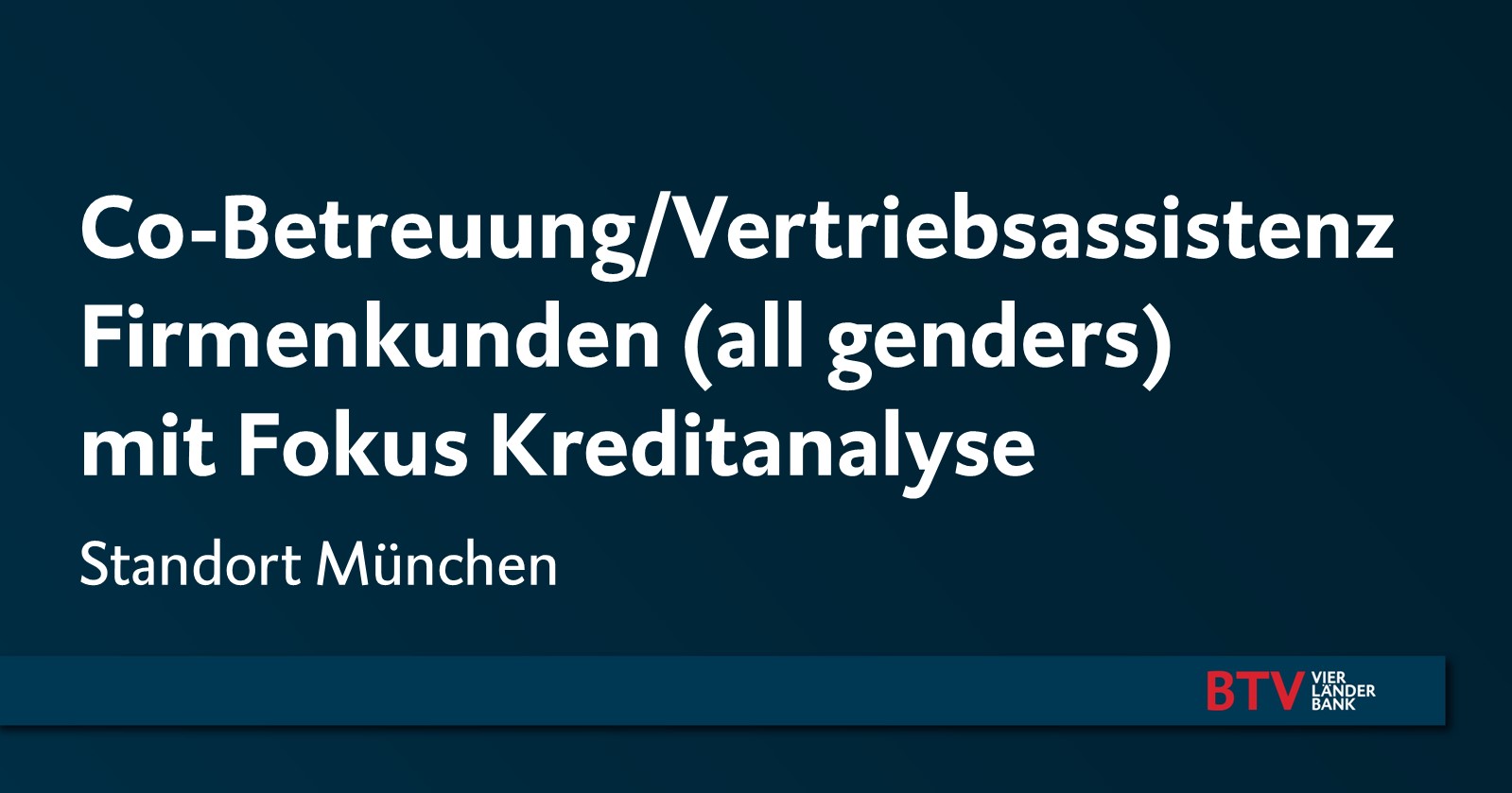 Co-Betreuung/Vertriebsassistenz Firmenkunden (all genders) mit Fokus Kreditanalyse