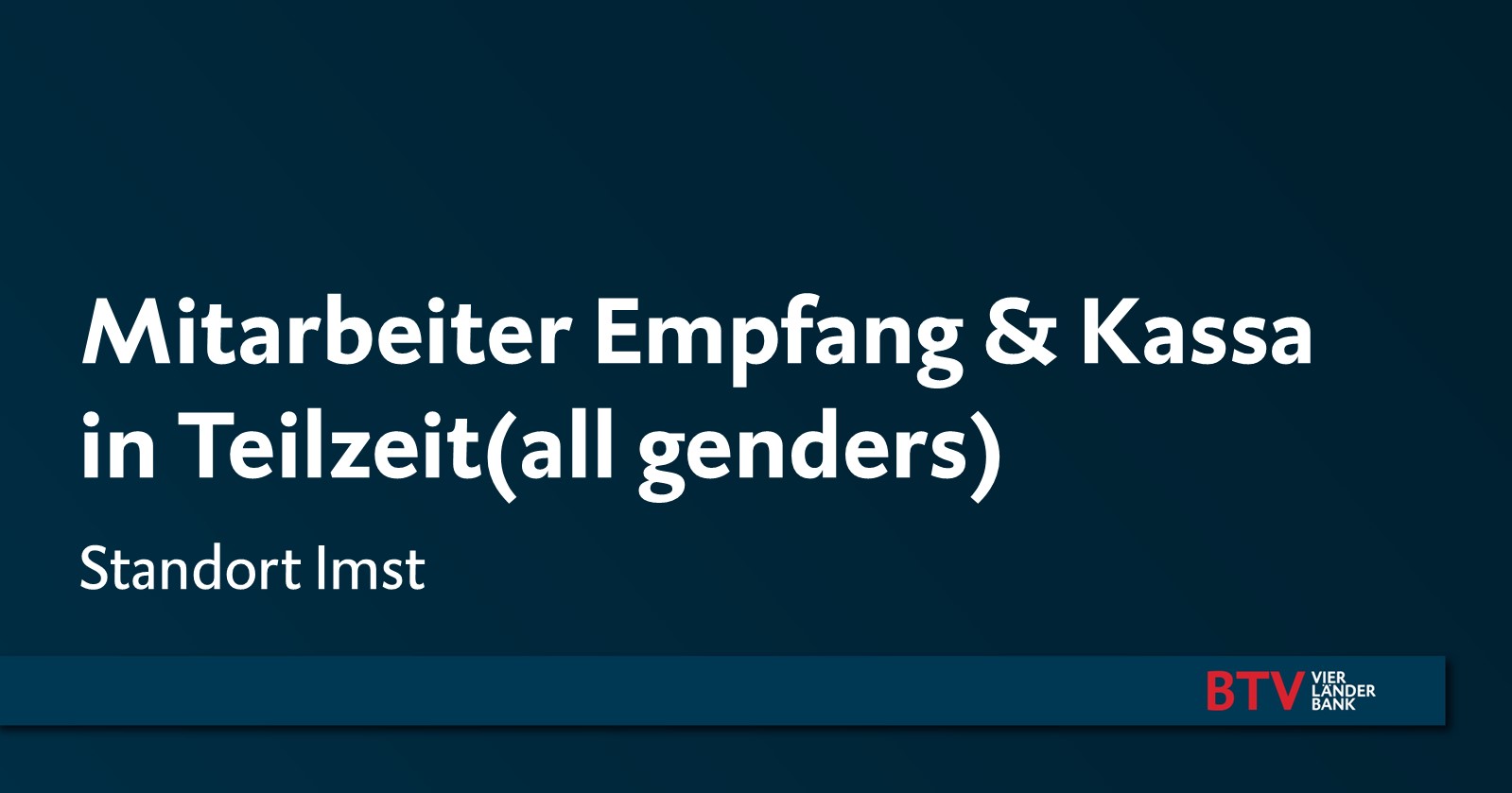 Die BTV Vier Länder Bank AG mit Sitz in Innsbruck zählt mit ihren rund 950 Mitarbeiter*innen zu den erfolgreichsten Banken Österreichs und ist in den Märkten Tirol, Vorarlberg, Wien, Süddeutschland, der deutschsprachigen Schweiz und Südtirol aktiv.